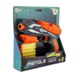 Lahka in varna otroška pištola z mehkimi penastimi metki za zabavno akcijsko igro. Enostavno polnjenje, preprosto upravljanje in mehki penasti metki za varnejšo igro. Idealna za otroke od 6 let, mere 20 × 14 cm, v pakiranju 5 kosov metkov.