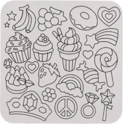 Vsebuje različne folije in nalepke z motivi, kot so kolački in rože.