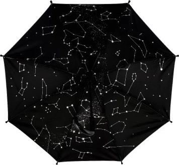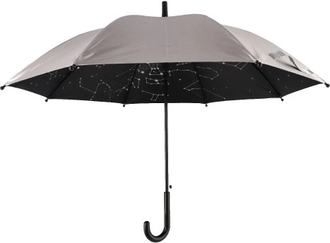 Notranja stran dežnika je okrašena z dekoracijo zvezdnega neba, ki doda eleganco in edinstven videz.