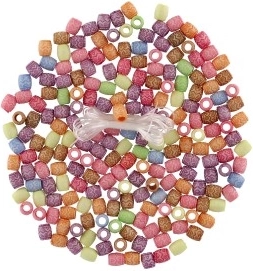 - Plastične perlice (mešanica barv) + vrvica za nizanje