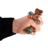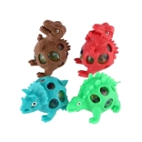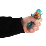 Antistresni stiskalni dinozaver je zasnovan za udoben oprijem v dlani in takojšnje olajšanje napetosti. Ob stisku se skozi odprtine izvalijo barvite gelne kroglice, ki nudijo prijeten haptični in vizualni vtis. Igrača je idealna za umiritev, podporo osredotočenosti in fino motoriko.