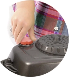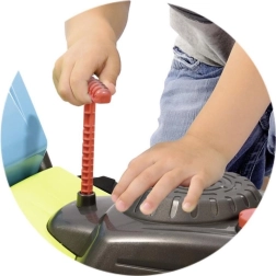 Imitacija stikala in rdeči zaganjalni »šarprak«, ki oddaja zvok, pripomoreta k pristnejši igri in spodbujata čutno zaznavanje.