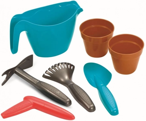 - Zalivalka, 2× lonček za rože, lopata, grablje, motika, sadilni količek