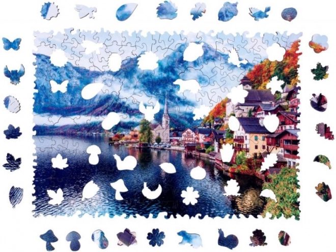 Uživajte v lepoti avstrijskega Hallstattskega jezera s to precizno izdelano leseno sestavljanko s 250 deli. Vsak kos je lasersko izrezan iz trdega bukovega lesa in ponuja gladke robove brez trsk.