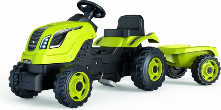 Poganjalni traktor FARMER XL s prikolico je odlična izbira za male voznike, ki imajo radi aktivno igro. Zahvaljujoč čvrsti plastični konstrukciji in premišljenim podrobnostim bodo otroci uživali v varni in zabavni vožnji tako na vrtu kot doma.