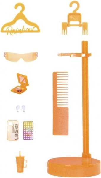 Lutka prihaja z množico stilskih dodatkov, vključno z glavnikom, sončnimi očali, obešalniki, make-up paleto in lončkom za pijačo, kar omogoča odlično mesto za stiliranje in igro.
