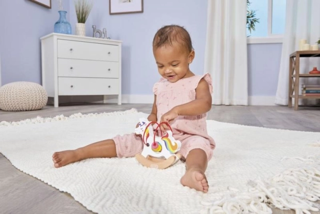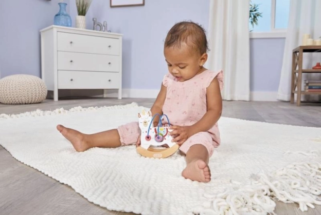 Little Tikes prinaša edinstvene lesene igrače, ki združujejo preprostost in ustvarjalnost. Ta gugalna žival je odlična izbira za malčke, ki bodo uživali ne le v zabavi, temveč tudi v smiselnem razvoju. Igrača je opremljena z barvnim žičnim labirintom s kroglicami, ki spodbujajo otrokovo domišljijo in koordinacijo.