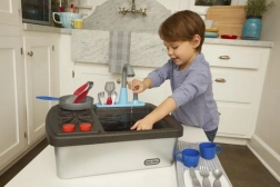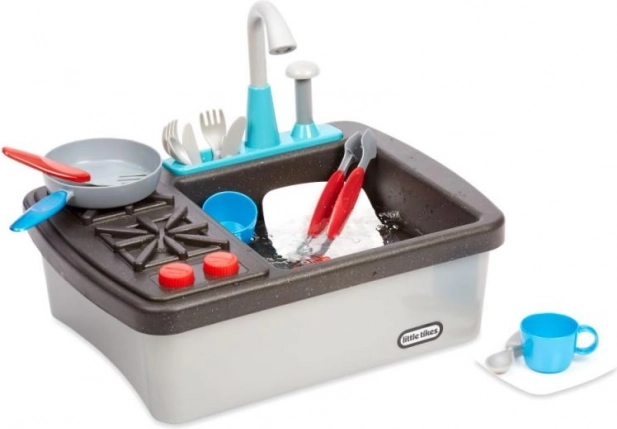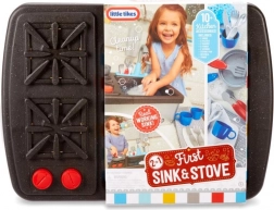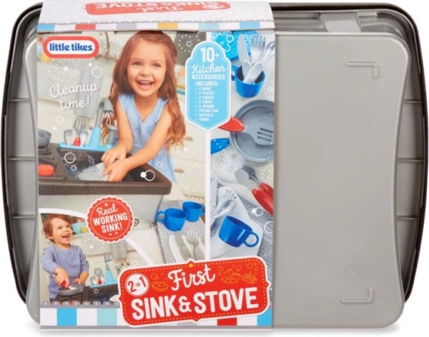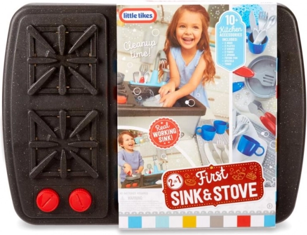 LITTLE TIKES First Sink & Stove prinaša realistično kuhinjsko zabavo naravnost v otroško sobo. Zahvaljujoč tekoči vodi s kroženjem, vrtljivim gumbom in bogati opremi posnema pravo kuhanje in pomivanje posode. Kompaktna in vzdržljiva zasnova je idealna za vsakodnevno igro.