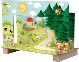 Magnetno gledališče z živalmi prinaša otrokom pisan svet pravljic naravnost v otroško sobo. Barvite kulise in figurice z magneti omogočajo enostavno in tekoče upravljanje, zato lahko mali gledališčniki odigrajo svoje najljubše prizore in si izmišljajo nove zgodbe.