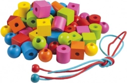 Del pakiranja so trpežne vrvice za udobno in varno nizanje, ki razvijajo koordinacijo in potrpežljivost.