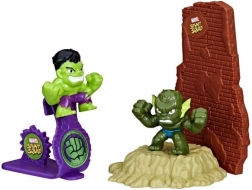 Potopite se v akcijski svet z igralnim kompletom Marvel Avengers Stunt Squad. Ta komplet ponuja odlično zabavo za vse, ki imajo radi prave superjunake iz Marvelovega vesolja. Dve realistični figurici velikosti 2,5 cm skupaj z izstrelitveno napravo in ciljno osnovo zagotavljata zabavo, polno akcijskih prizorov. Spodbudite ustvarjalnost in razvoj otroške domišljije skozi napete dvoboje med junakom in zlikovcem.
