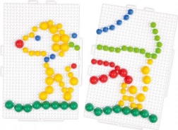 Z vstavljanjem zatičev v ploščo otroci vadijo fino motoriko in izboljšujejo svoje ročne spretnosti.