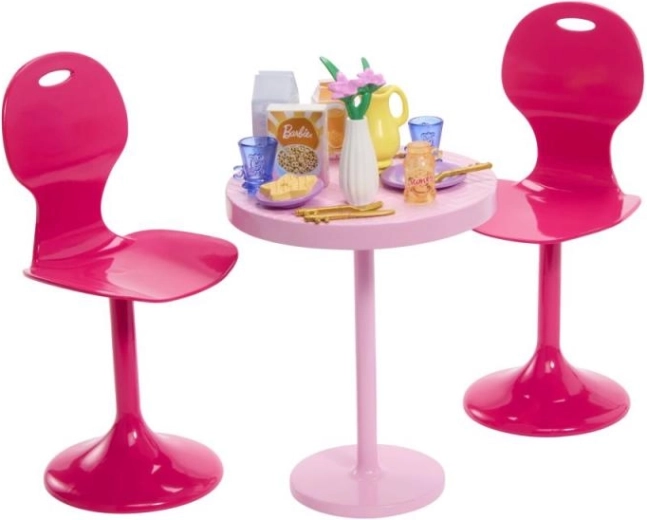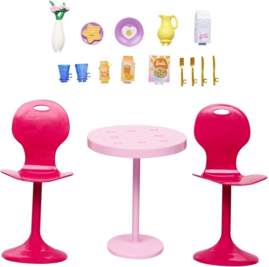 Pohištvo za punčke – miza in stoli z dodatki, plastika, 12 cm