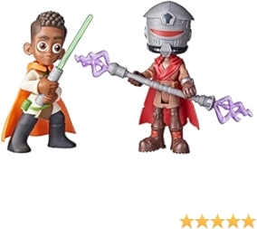 Vstopite v galaksijo zabave z setom Star Wars Pop‑Up Duel. Dve podrobno izdelani figurici velikosti 10 cm otrokom prinašata pristno doživetje iz serije Young Jedi Adventures na Disney+. Z enim pritiskom gumba na pasu se svetlobni meč ene od likov bliskovito izstreli – po dvoboju ga zlahka potisnete nazaj.