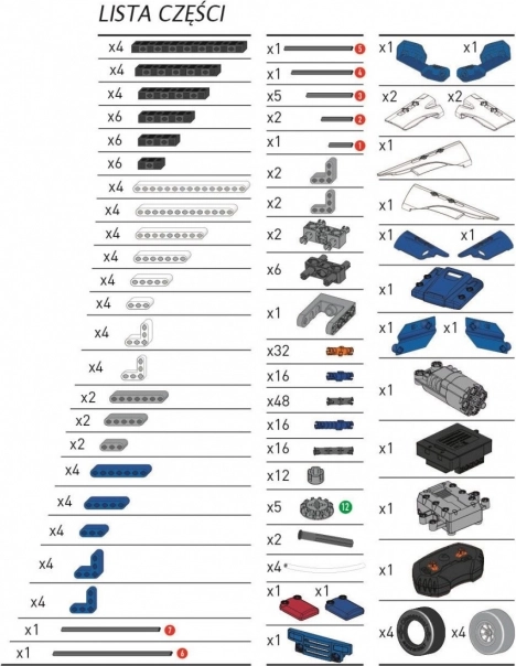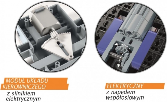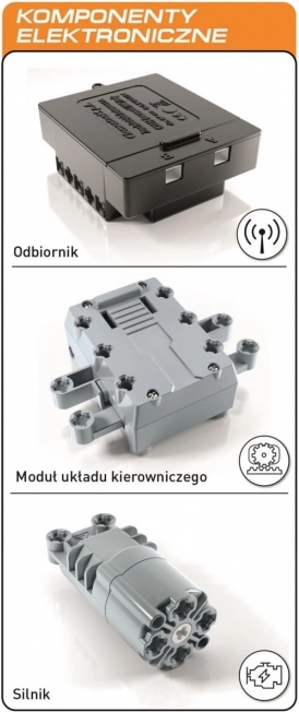 - Vsebuje več kot 300 sestavnih delov za sestavljanje, dva elektromotorja za pogon zadnjih koles ter volan, menjalnike in pogonsko enoto. Vozila je mogoče upravljati z daljinskim upravljalnikom.