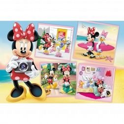 Otroški puzzle z motivom DISNEY MINNIE vsebuje 60 koščkov in po sestavljanju ustvari sliko velikosti 330 × 220 mm. Ponaša se z živahnimi barvami, trdnimi kartonskimi koščki ter prijetnim leskom zahvaljujoč posebnemu papirju, ki olajša sestavljanje. Odlično za otroke od 4 let naprej in vse oboževalce prikupne Minnie.