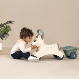 Voziček Smoby Little Pony s priklopnikom je idealen za majhne otroke, ki se šele učijo hoditi in razvijati ravnotežje. Zaradi udobnega sedeža in odstranljivega priklopnika lahko otroci prevažajo svoje najljubše igrače in drobnarije.