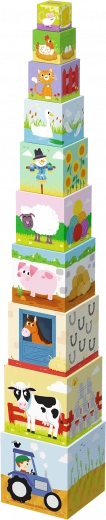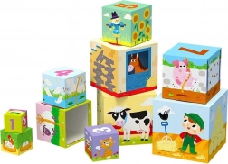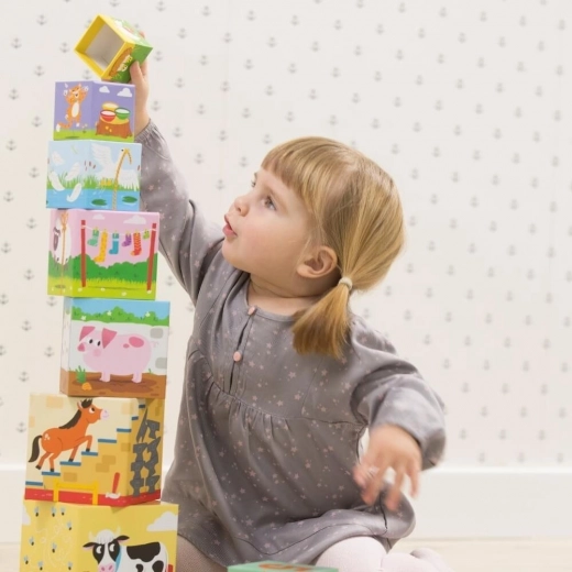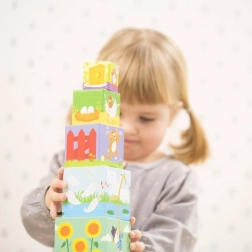 Odkrijte svet na kmetiji in učite se skozi igro. Barvite ilustracije živalic, številke in prizori iz vsakdanjega življenja na kmetiji otroke pritegnejo ter naravno razvijajo zaznavanje dimenzij, domišljijo in spomin. Iz kock preprosto zgradite stabilen stolp do 86 cm, ograde za živali ali mostove – domišljiji ni meja.
