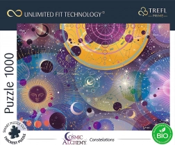 Uživajte v očarljivem motivu ozvezdij in zodiakalnih simbolov v živih barvah, ki polepšajo vsako mizo ali dnevno sobo. Sestavljanka s približnimi dimenzijami 68,3 × 48 cm po sestavi ponuja popolno združitev zabave in estetike – od finih detajlov do tekočega spajanja zahvaljujoč tehnologiji UFT.