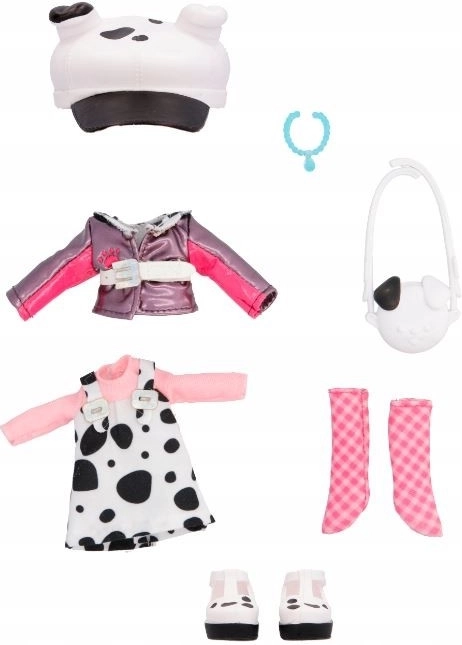Dotty ima stilske barvite lase, kristalne oči in gibljivo telo! Nosi modna oblačila in posebne pikaste obleke z ogrlico, kovinsko usnjeno jakno, čevlje Mary Jane s platformo in kariraste nogavice! Dodaj ji torbico za čez ramo, ljubko kapo s pasjimi ušesi in ujemajočo se ogrlico BFF!