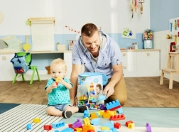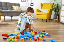 Velike kocke dobro ležijo v roki in se zlahka povezujejo, zato otroci pri vsaki gradnji urijo koordinacijo, zbranost in domišljijo.