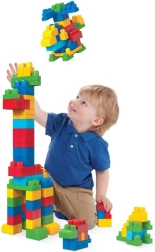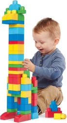 Velike, varne in barvite kocke Mega Bloks so idealne za majhne rokice. Zaradi svoje oblike in velikosti se zlahka sestavljajo in razstavljajo, kar otrokom pomaga razvijati potrpežljivost, koordinacijo oko–roka in domišljijo. Praktična vreča z ročajem olajša prenašanje in shranjevanje, zato je gradbeni set vedno pripravljen na novo pustolovščino.
