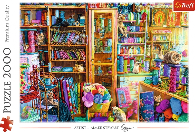 Uživajte v sprostitvi s sestavljanko z 2000 koščki, ki prikazuje prijeten mačji kotiček. Po sestavi nastane slika dimenzij 961 × 682 mm. Sestavljanka je izdelana iz kakovostnih materialov in posebnega kalandriranega papirja, ki odbija svetlobo in olajša sestavljanje. Izdelano na Poljskem iz okolju prijaznih materialov.