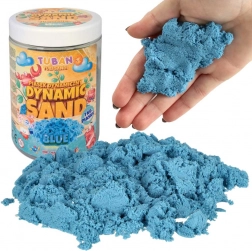 Modri dinamični pesek prijetno polzi med prsti, hkrati odlično drži obliko ter spodbuja ustvarjalno igro in fino motoriko.