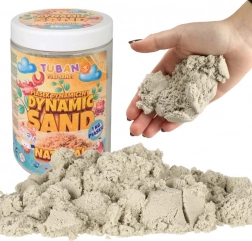 Dinamični (kinetični) pesek TUBAN v naravni barvi se pretaka med prsti, hkrati pa odlično drži obliko pri stiskanju v modelčke. Otroci se lahko z njim igrajo kadar koli – doma, v šoli ali vrtcu – brez odvečnega nereda. Pesek je namenjen dolgotrajni uporabi, ne izsuši se in ne otrdi.