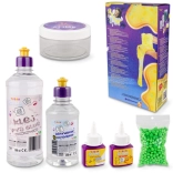 Komplet omogoča otrokom, da postanejo mali kemiki in opazujejo, kako se tekoče sestavine z mešanjem spremenijo v povsem drugo obliko. Končni sluz lahko gnetejo, raztezajo in delijo, s čimer se razvijata ročna spretnost in fina motorika.