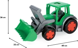 Odlična igrača za najmlajše, ki služi kot vozilo za gradnjo, nakladanje in prevoz. Premišljena in gibljiva žlica traktorja se lahko uporablja kot buldožer ali nakladalnik, kar naredi igro še bolj privlačno. Velika prednost vozila je robustna konstrukcija, odpornost in nosilnost do 100 kg.