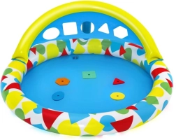 Napakljivi mehki robovi, plitva vodna površina in senčnik zagotavljajo udobje in večjo varnost pri igri na prostem.
