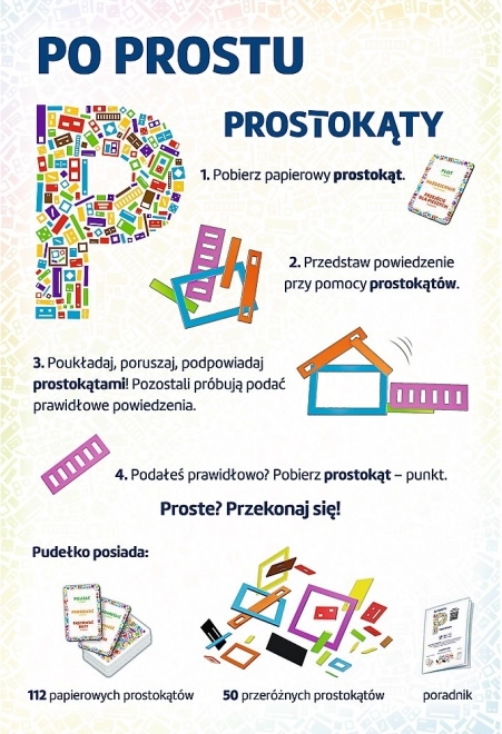 Še en del igre Simply P, kjer imajo glavno vlogo pravokotniki. Družinska igra, v kateri ustvarjate slogane P s pomočjo razpoložljivih pravokotnikov. Število koščkov se z vsakim naslednjim izzivom zmanjšuje, zato je igra zahtevna. Preprosto? Ugotovite!