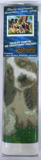 Diamantno slikanje Vesela pasja druščina 30 × 40 cm – celovit komplet za sproščujoče ustvarjanje. Preprosta aplikacija, bleščeč rezultat, odlično darilo.