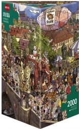 Kreativna sestavljanka, pakirana v nenavadni trikotni škatli, prinaša odlično zabavo za otroke in odrasle. Sestavljanka od nemških umetnikov Doro Göbela in Petra Knorra zajema živahno in zabavno sceno povorke.
