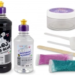 Odkrijte vesoljski užitek z DIY Slime Galaksija XL, ki očara vsakega otroka s svojo edinstvenostjo. Opazujte, kako se iz črne sluzi spreminja v kozmično maso z milijoni bleščečih drobcev.