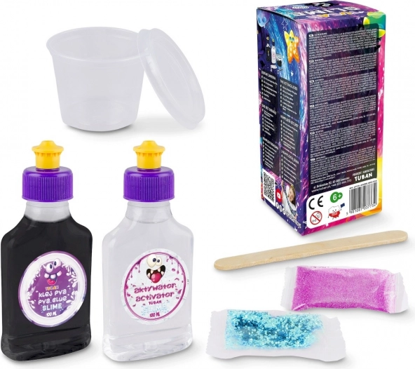 Komplet Slime Galaksija je idealen za otroke, ki radi eksperimentirajo in ustvarjajo! Črn sluz očara z milijoni bleščečih in neonskih delcev, ki spominjajo na galaksijo. Igrača spodbuja otroško domišljijo in spretnost.