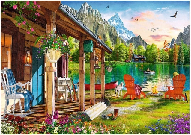- Čudovit motiv hiške v gorah z jezerom za prijetno vzdušje med sestavljanjem.