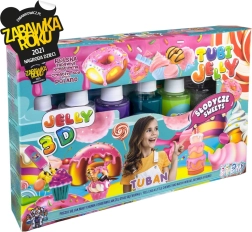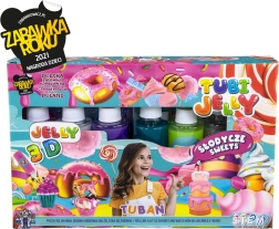 Komplet TUBI JELLY Sladkarije prinaša zabaven vstop v svet gelastih stvaritev. Z 6 gelnimi barvami, vključno z bleščeče zlato, in tematskimi šablonami sladkarij zlahka ustvarite svoje tridimenzionalne gelaste figurice. Dovolj je, da obrišete konture, zapolnite vzorec, potopite v aktivator in pustite, da se strdi.