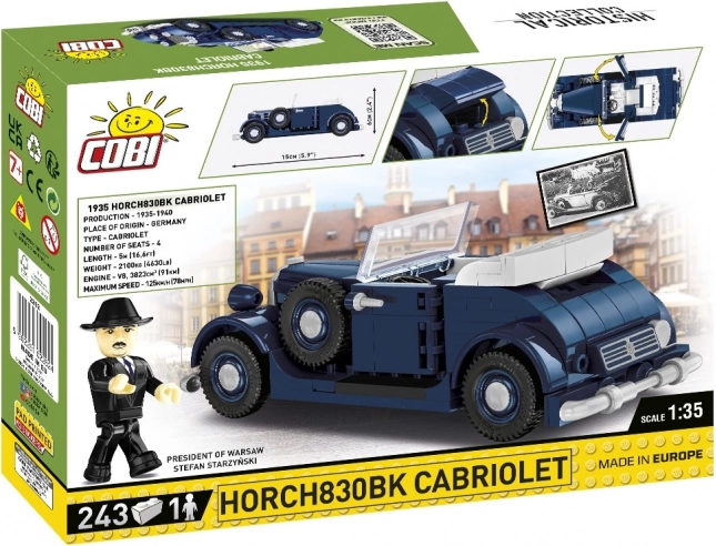 Gradbeni komplet kabrioleta HORCH 830BK v merilu 1:35. 243 delčkov, trajni potiski, združljiv z drugimi znamkami, izdelano v EU, figurica Starzyński.