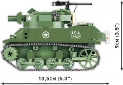 Z 525 natančno izdelanimi koščki boste uživali tako pri sestavljanju kot pri razstavljanju končanega modela. Ne manjkajo vrtljiva kupola, elevacija topa, dostop do motorja in imenska ploščica. V pakiranju je tudi figurica ameriškega častnika (kapitan). Vse je izdelano v EU, združljivo z drugimi seti in varno za otroke.
