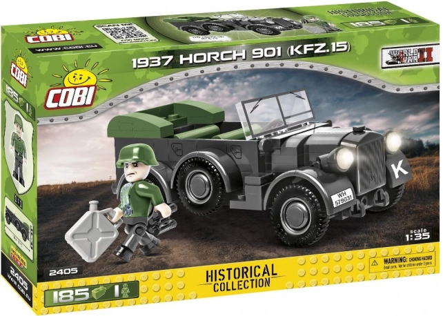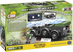 Verná replika vozila Horch 901, ki so ga nemške oborožene sile uporabljale v letih 1937–1945, prinaša v vašo zbirko realistične oblike in funkcionalne podrobnosti. Vozilo je bilo uporabljeno kot štabni avtomobil, reševalno vozilo, zveze, lahek topniški vlačilec ter za prevoz zalog in vojakov. Model COBI uporablja nove vrste kock za še boljše oblikovanje karoserije in enostavne predelave.