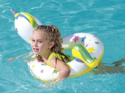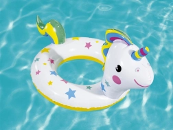 Otroški plavalni obroč BESTWAY v obliki veselega samoroga pomaga graditi samozavest v vodi in prinaša veliko zabave. Živa grafika z zvezdicami navduši na prvi pogled, medtem ko čvrst material zagotavlja dolgo življenjsko dobo tudi pri pogosti uporabi ob bazenu ali na morju.