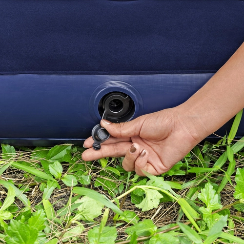 Zahvaljujoč varnostnemu ventilu sta napihovanje, uravnavanje tlaka in izpihovanje vprašanje trenutka. Vzmetnica je primerna za uporabo v notranjih in zunanjih prostorih, odlično služi za goste, na vikendu ali pod šotorom. Del paketa je vodoodporen popravni obliž za hitro sanacijo manjših poškodb.