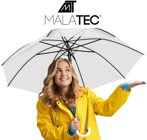 Prozorno platno iz PVC omogoča varno spremljanje poti tudi ob močnejšem dežju, ko je treba dežnik držati pod kotom. Dežnik je hkrati stilski dodatek k elegantnim opravám, vključno s poročnimi in svečanimi oblekami.