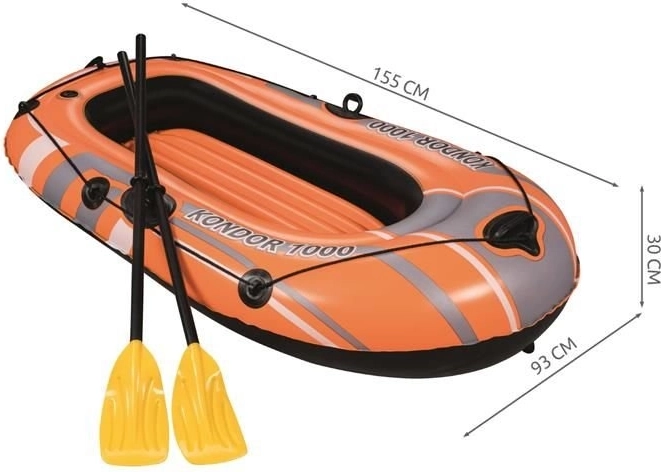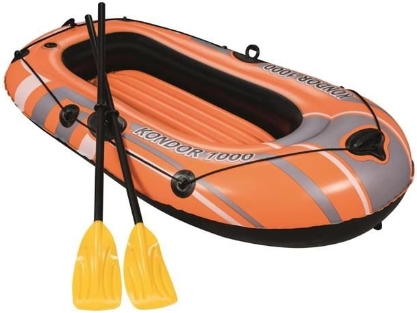 Napihljiv čoln Kondor 1000 je namenjen rekreativnim vodnim aktivnostim. Opremljen je s tremi ločenimi zračnimi komorami, kar zagotavlja stabilnost in varnost na vodi. Poleg tega ima obodni oprijemni trak z integriranimi ročaji za lažji vstop v vodo. Napihljivo dno zagotavlja dodaten komfort med plovbo.