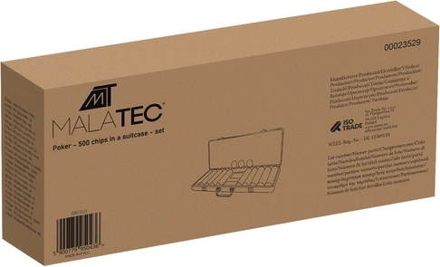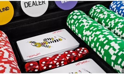 Idealno za Texas Hold’em, Omaho, Blackjack, Ruleto in druge igre. Dva polna kompleta kart, žetoni za vloge Dealer, Small Blind in Big Blind ter široka paleta vrednosti žetonov vam omogočijo pripraviti hitro cash igro ali napet turnir.