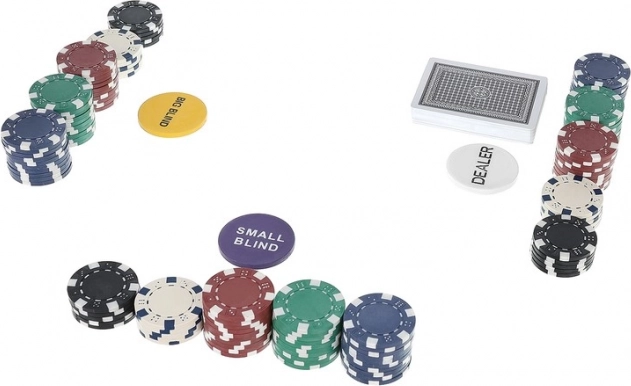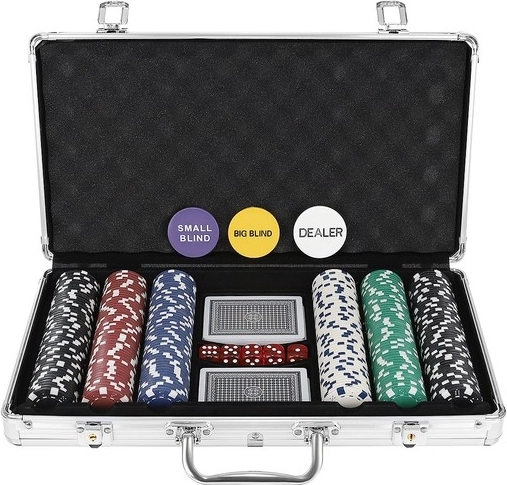 - 300 žetonov s kovinskim jedrom za realističen občutek igre