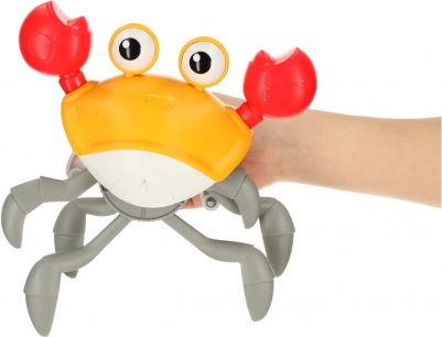 Interaktivni plezajoči rak z zvokom in senzorji. Izogiba se oviram, ima polnilno baterijo in USB. Zabava in razvoj čutov za otroke od 3 let naprej.