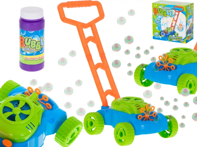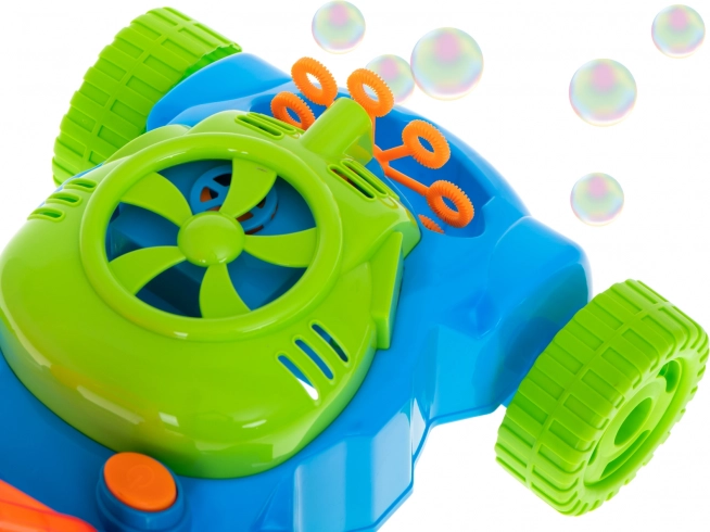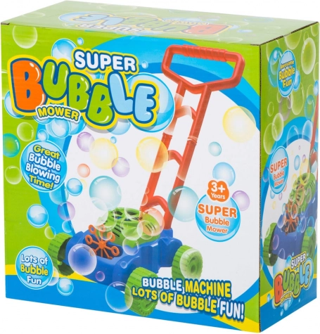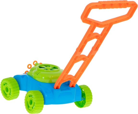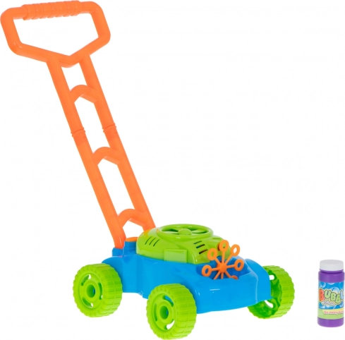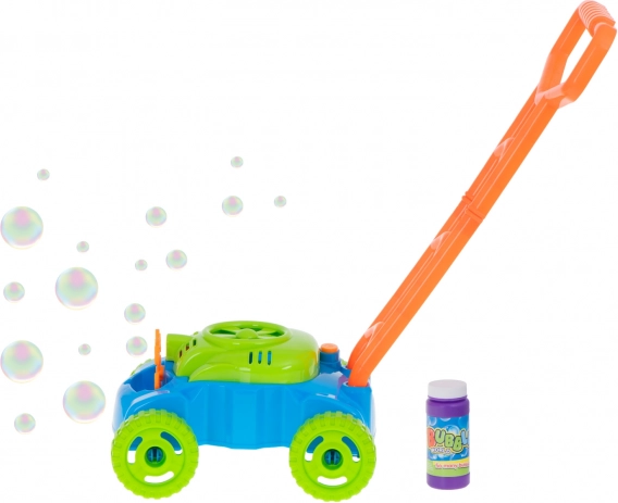 Predstavljajte si, kako vaš otrok potiska to čarobno kosilnico po vrtu v sončnem dnevu. Kosilnica spušča čarobne mehurčke, ki polepšajo vsak trenutek. Opremljena je z 8 obročki, ki se med gibanjem potapljajo v raztopino, medtem ko majhen ventilator ustvarja nežen vetrič, zaradi česar nastajajo pisani milni mehurčki.